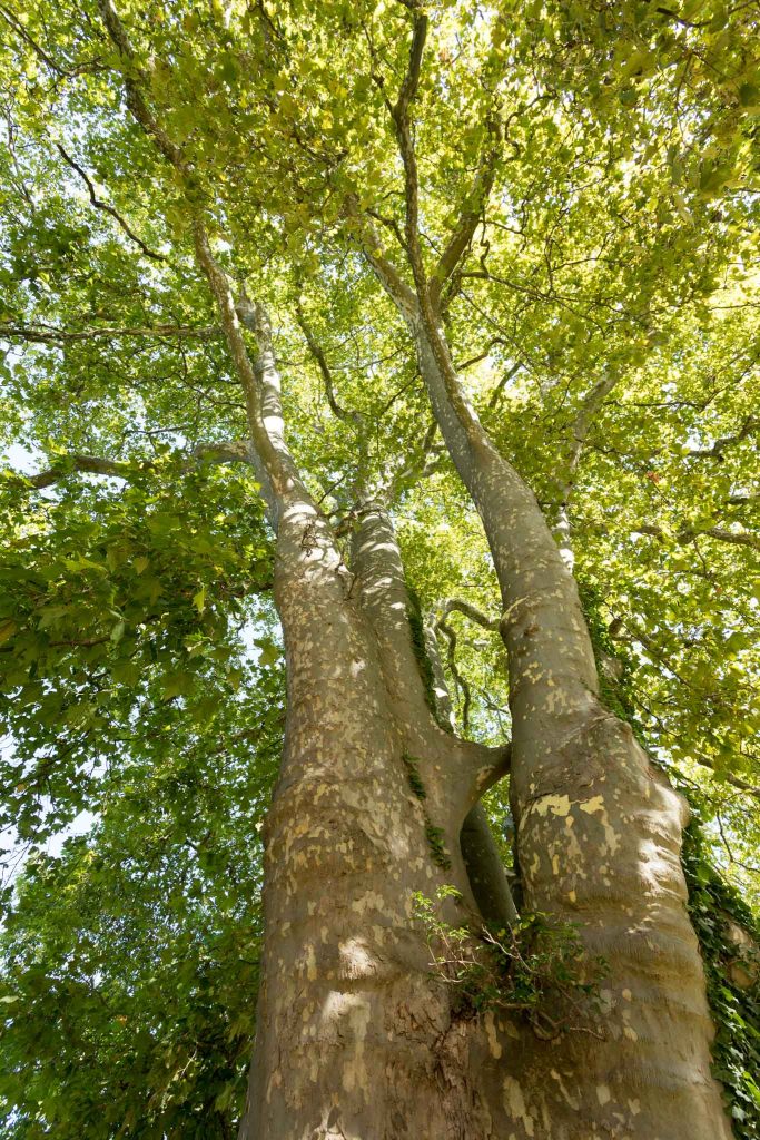 Deux platanes portent encore les traces des anneaux où on attachait les barges de transport. Ces platanes ont continué de pousser en prenant des formes très particulières, engloutissant les supports de ses larges branches, mais surtout les anneaux, maintenant invisibles de l’extérieur. La pointe de fixation de l’anneau pend librement à l’intérieur du tronc qui s’est évidé en vieillissant, alors que l’anneau lui-même reste encore englouti dans le tronc.