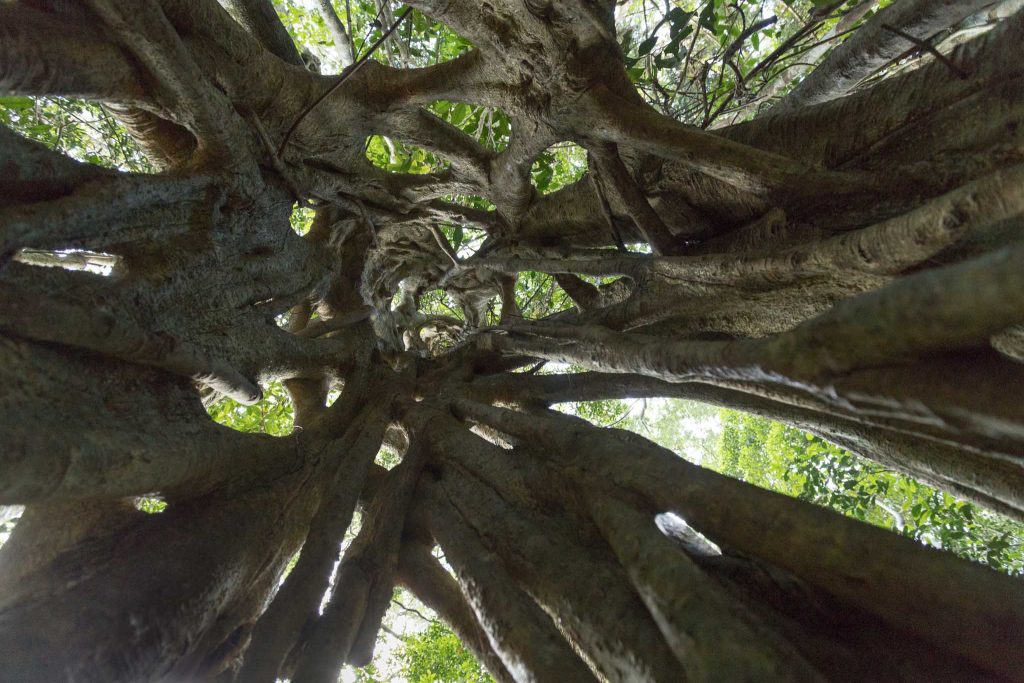 Quand l’arbre hôte est complètement décomposé, les racines du figuier sont suffisamment grosses pour lui permettre d’être autoportant. Le tronc de l’arbre hôte ayant disparu, on peut même observer le treillage de l’intérieur.